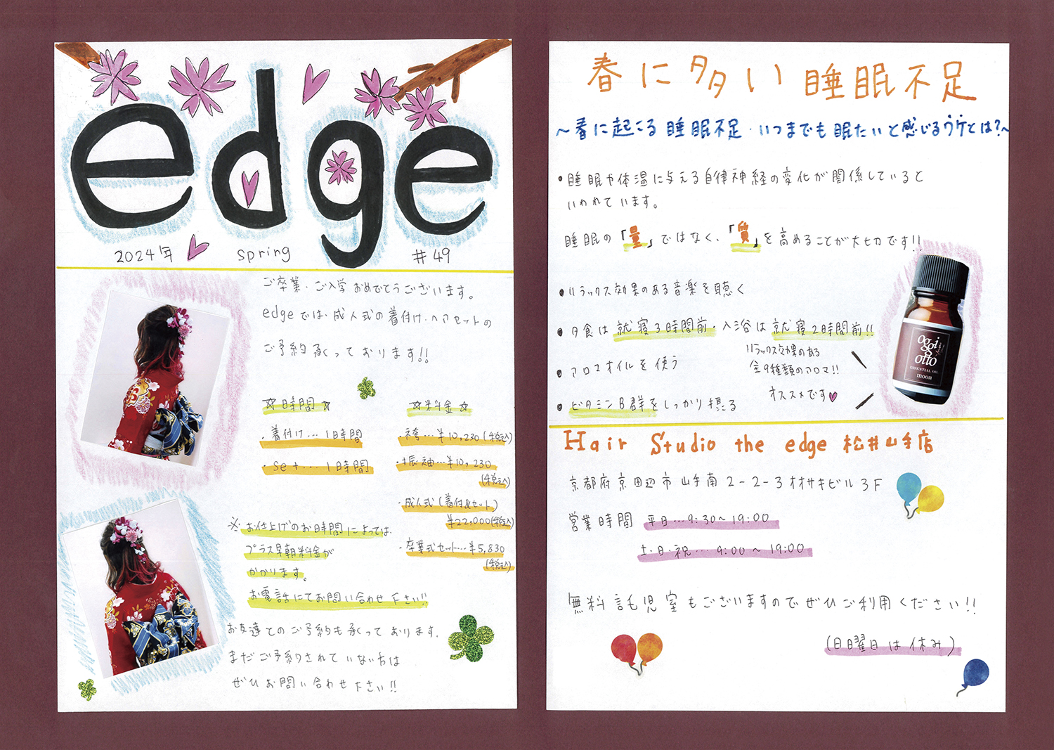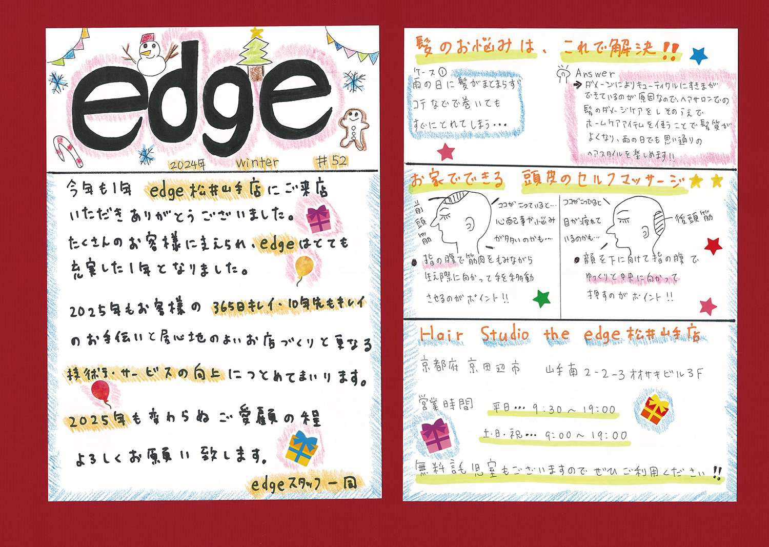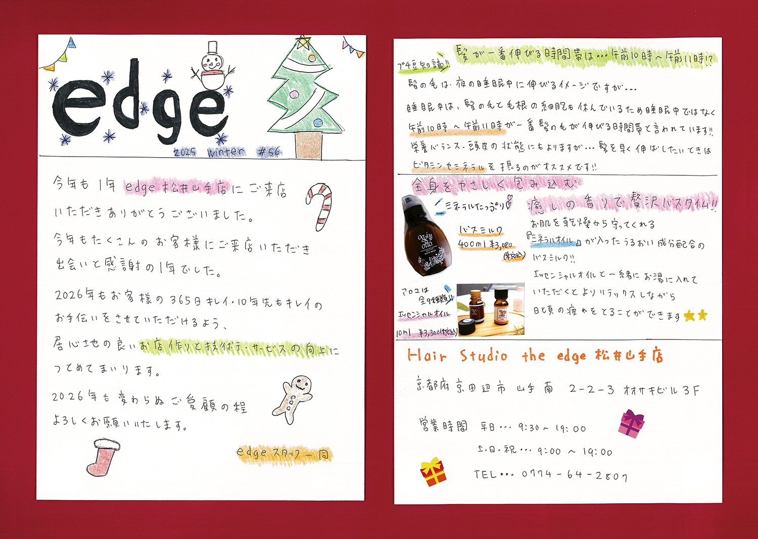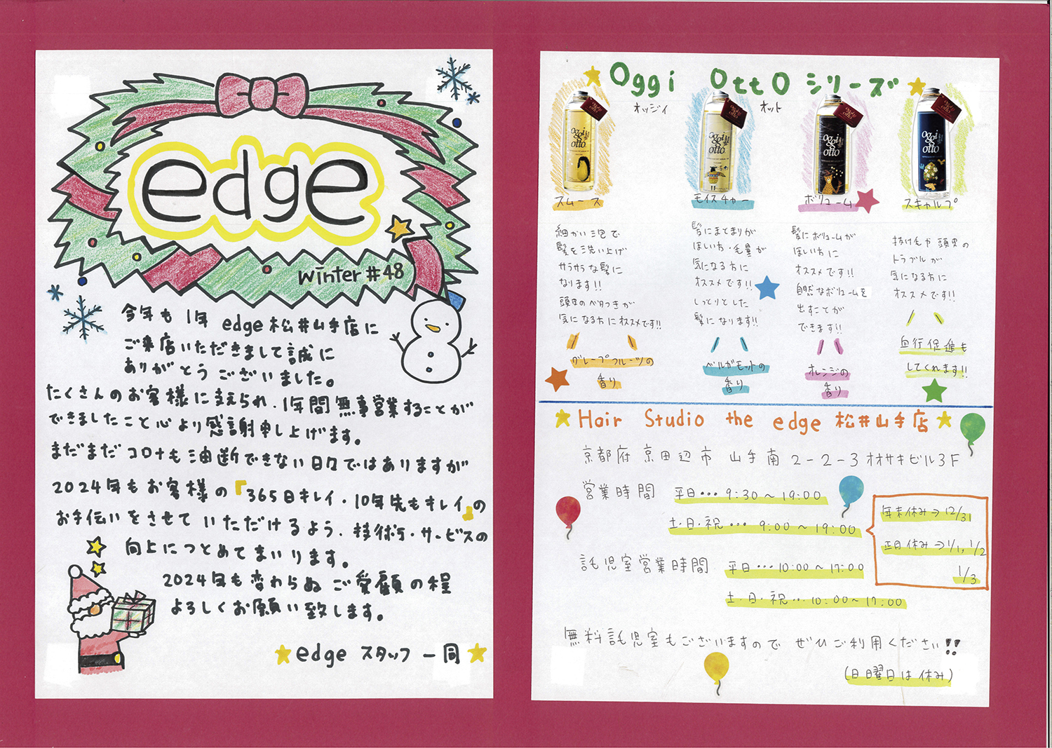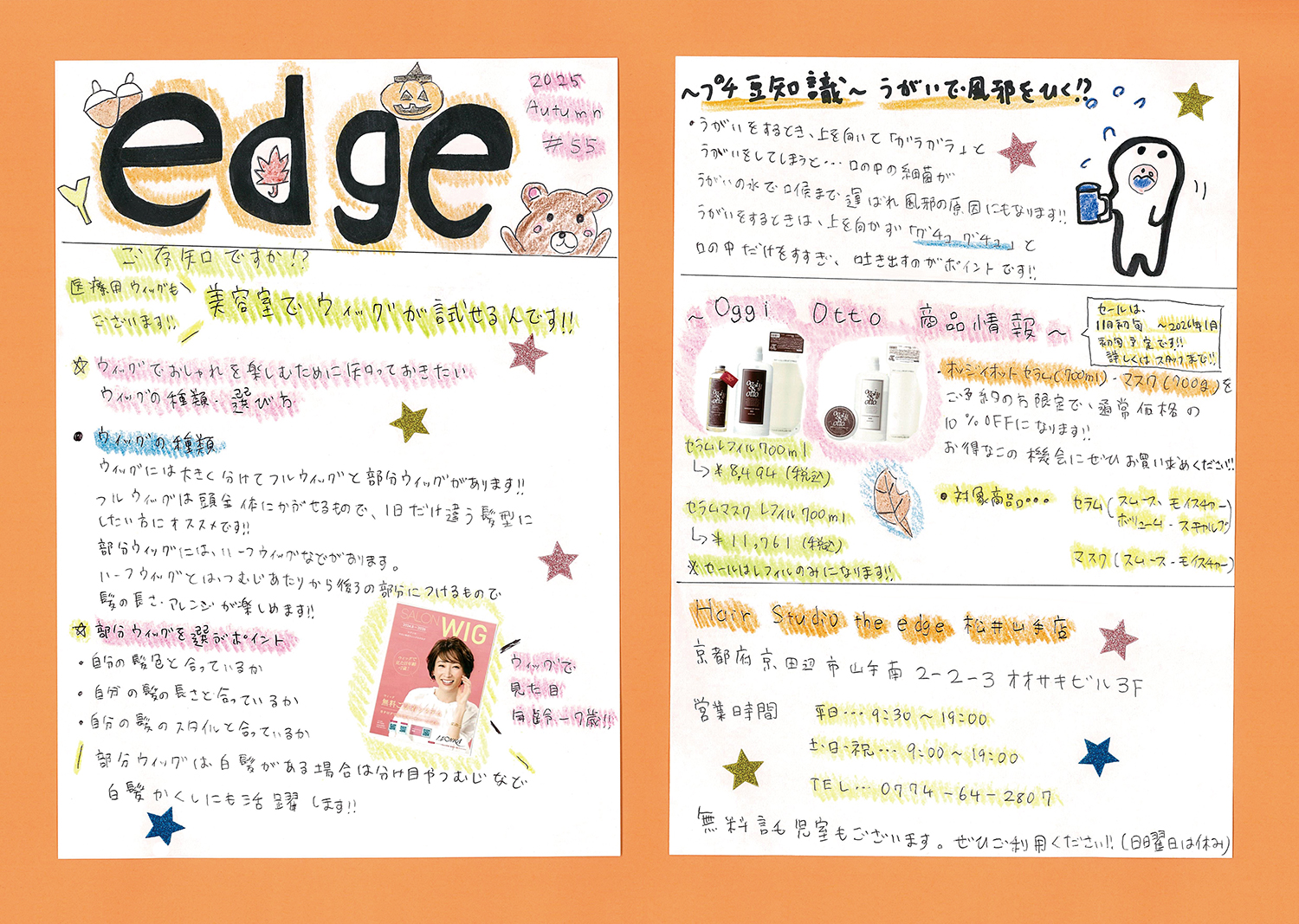 スタッフ手作りの新聞でサロンの最新情報をお届けします!ぜひご覧ください!(年4回発行)