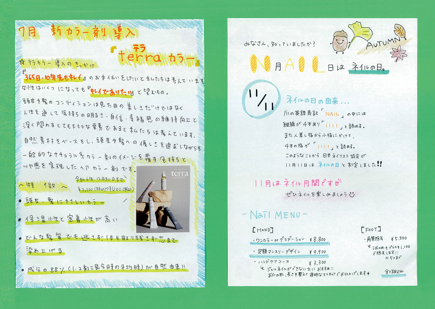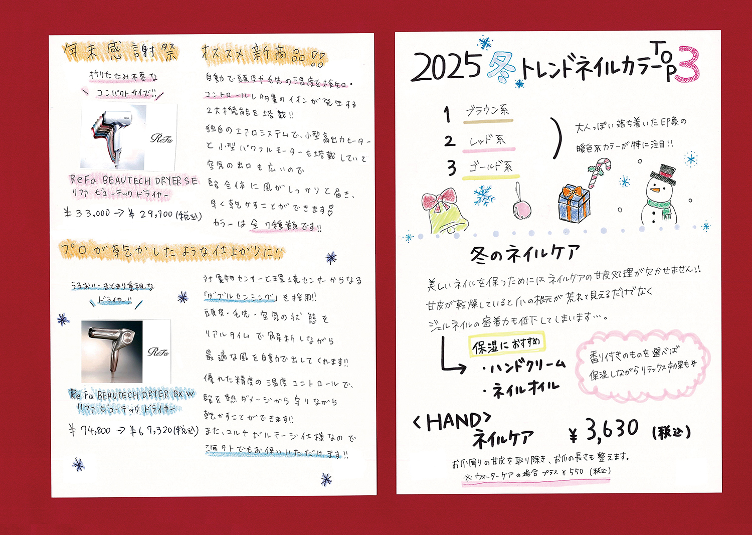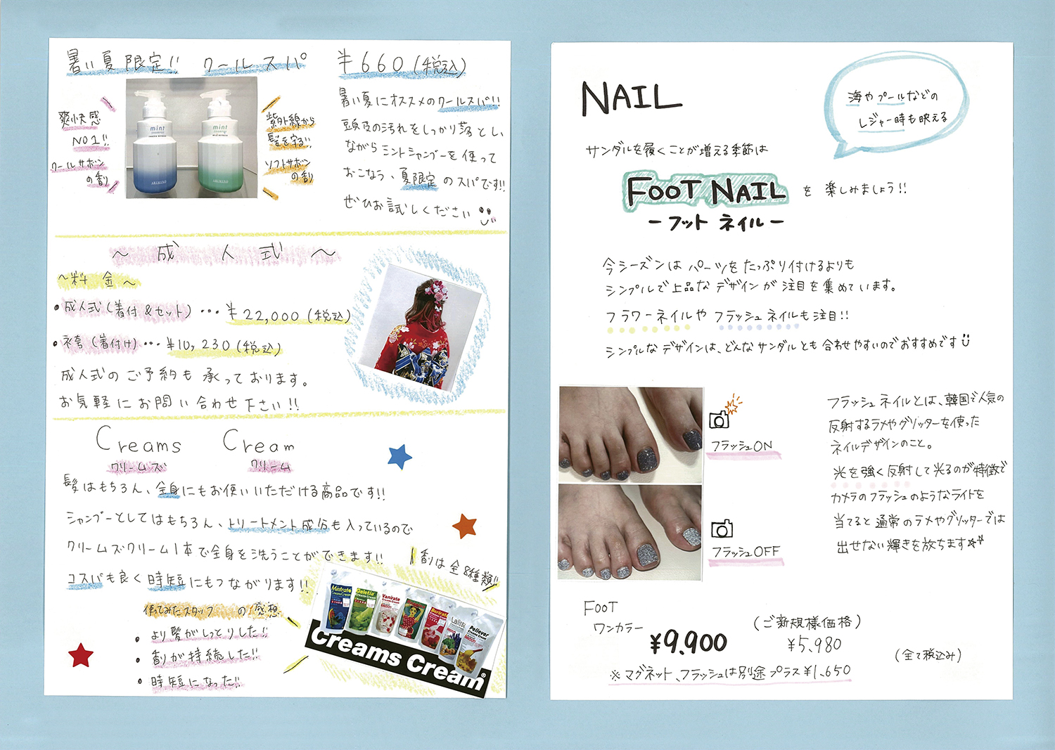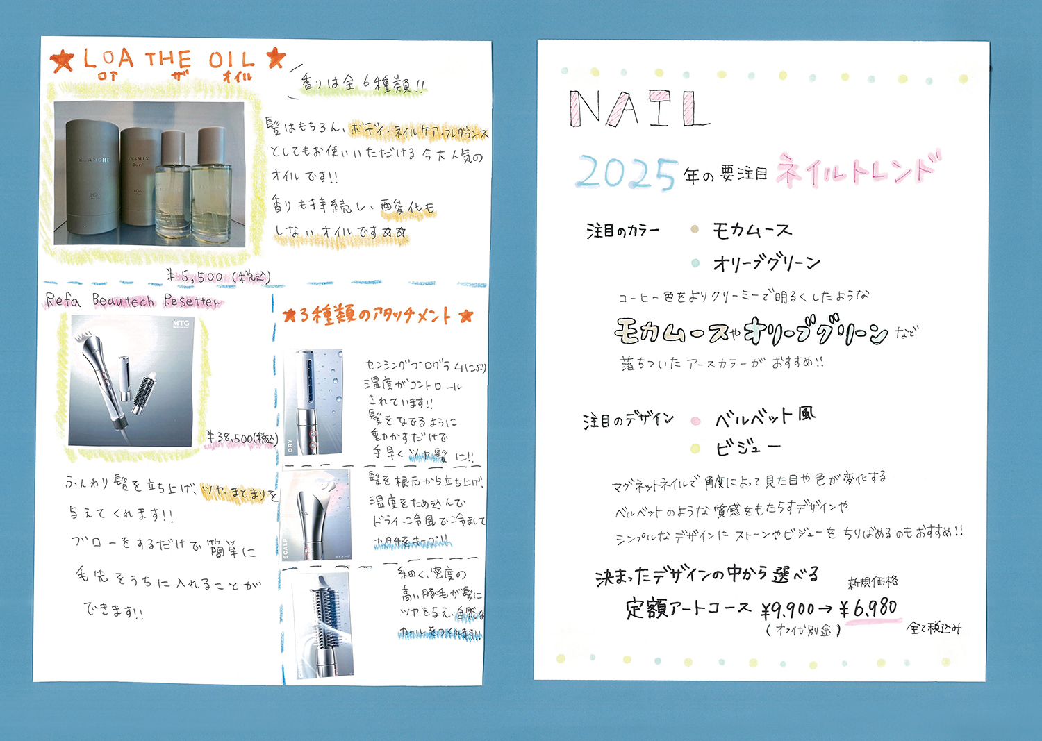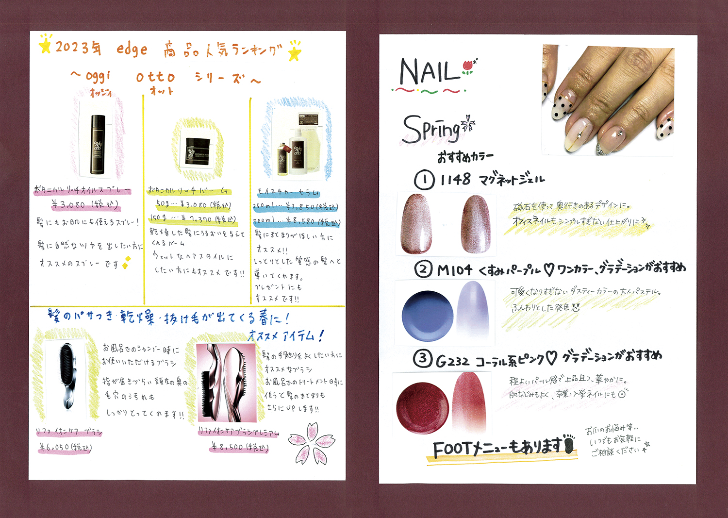 スタッフ手作りの新聞でサロンの最新情報をお届けします!ぜひご覧ください!(年4回発行)